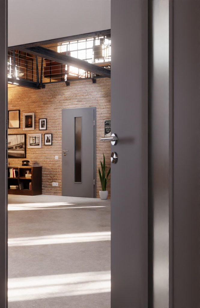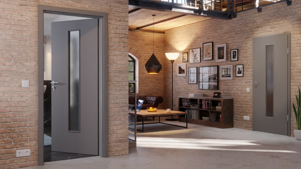 Drzwi odporne na zarysowania z atrakcyjnym wykończeniem i wbudowanym przeszkleniem: