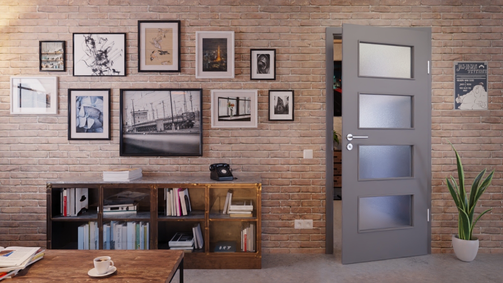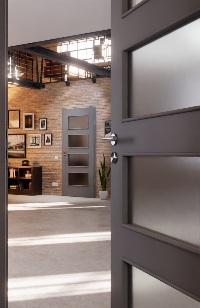 Drzwi odporne na zarysowania z nietypową powłoką i wbudowanym otworem na światło: