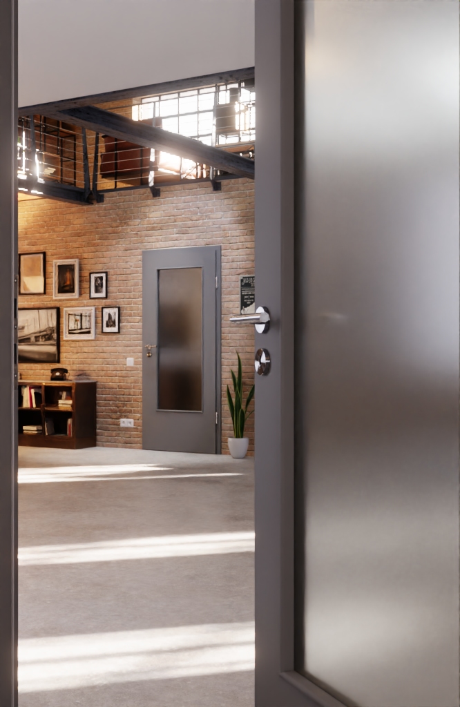 Wewnętrzne drzwi odporne na UV z trwałym wykończeniem i wbudowanym szkłem: