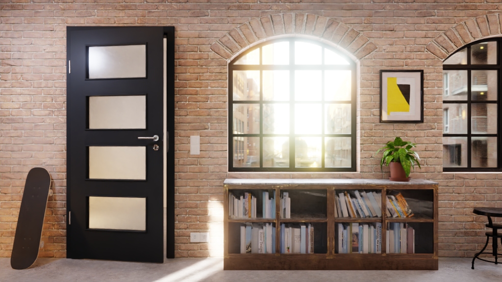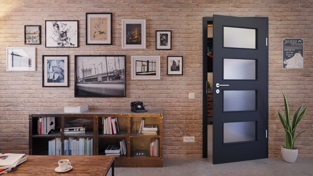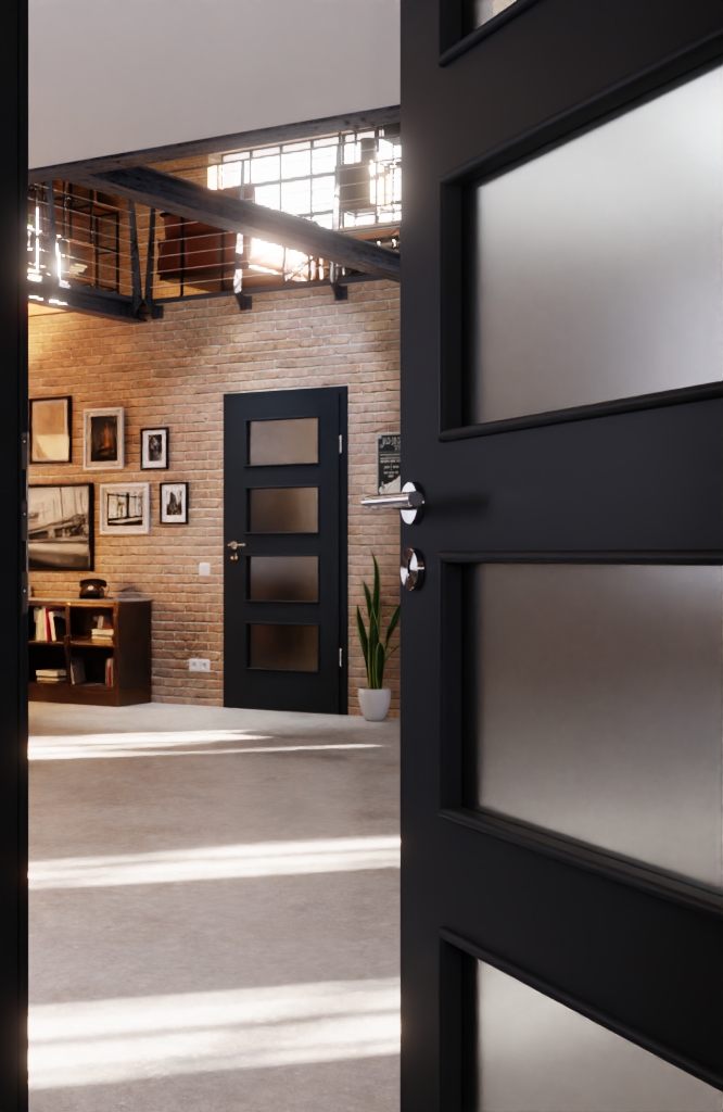 Model drzwi odporny na zarysowania z eleganckim wykończeniem powierzchni i wbudowanym przeszkleniem: