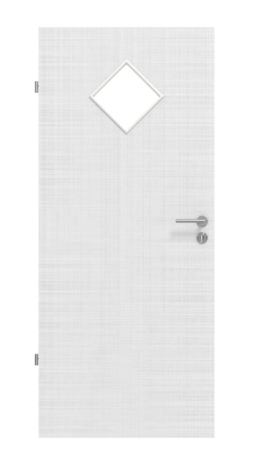 Połączenie wyciętego szkła i białego dekoru lnianego nadaje skrzydłu drzwi elegancki i nowoczesny wygląd. Wpuszczona struktura podkreśla delikatne linie naturalnego wzoru.