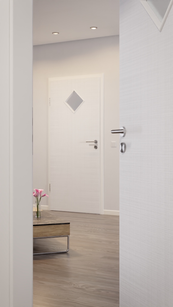 Dzięki płycie wiórowej umieszczonej wewnątrz skrzydła drzwiowego model zachowuje stabilność nawet przy intensywnym użytkowaniu. Aby idealnie dopasować drzwi wewnętrzne do własnych upodobań, można wybrać między okrągłą a prostokątną wersją krawędzi . Modele z kanciastymi krawędziami wyróżniają się dzięki ochronie krawędzi 4Protect.