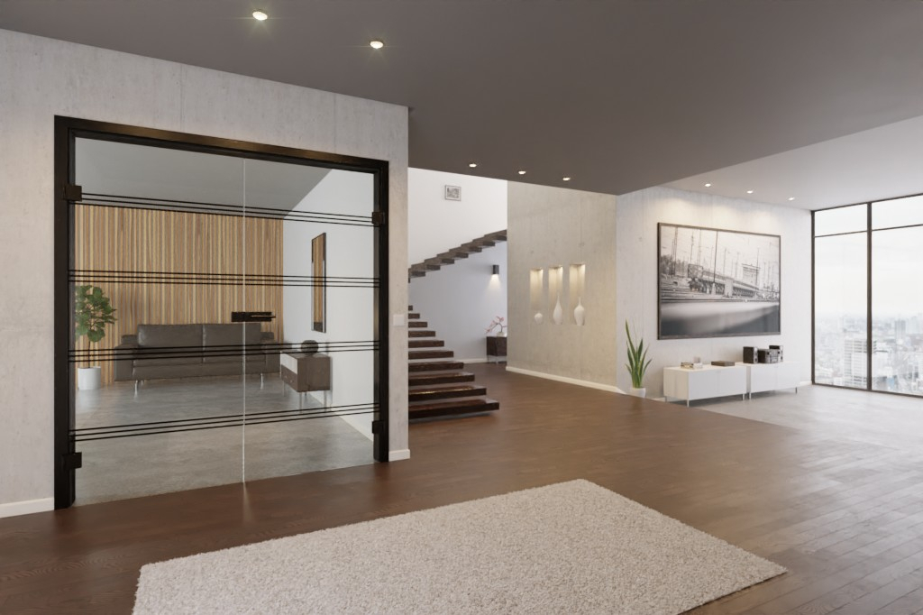 Dzięki zastosowaniu wytrzymałego szkła hartowanego możesz polegać na trwałości drzwi. Dzięki przestronnemu przejściu Twoi goście będą się czuć szczególnie mile widziani w Twoim domu.