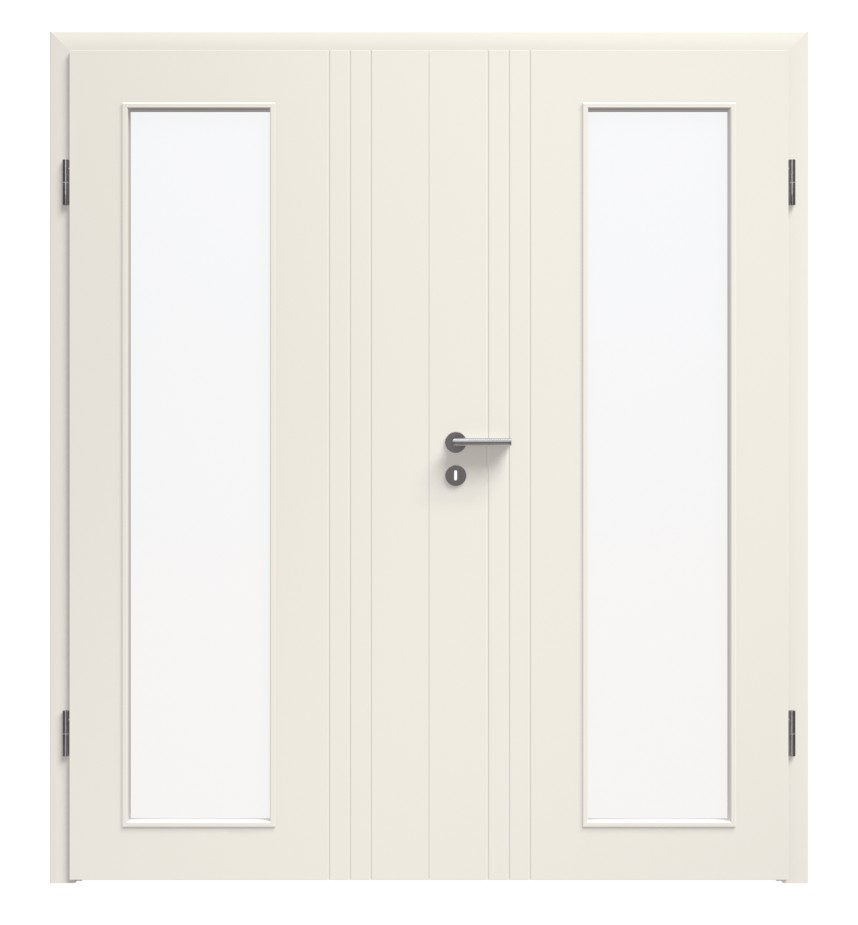 Już w standardowym wyposażeniu model wykonany jest z solidnej płyty wiórowej. Oferujemy również wiele możliwości konfiguracji, takich jak specjalne wymiary czy wykończenia krawędzi. Standardowo drzwi podwójne są wyposażone w wbudowany rygiel krawędziowy i zaczep. W skład dostawy wchodzi również ościeżnica z okrągłą krawędzią, inne modele są dostępne opcjonalnie.