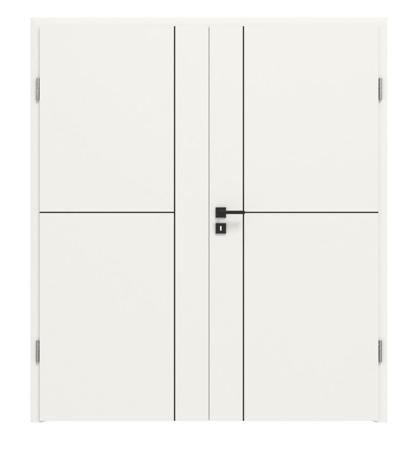 Aby zapewnić swobodny przejście: Drzwi dwuskrzydłowe M23 w białym lakierze RAL 9016 z serii Linea Black elegancko otwierają Twoje pomieszczenia.