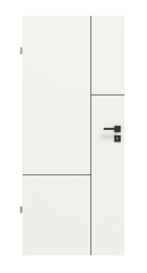 Na skrzydle drzwiowym widoczne są trzy wyfrezowane czarne linie . Nadają one lakierowanemu na biało modelowi nowoczesny wygląd.