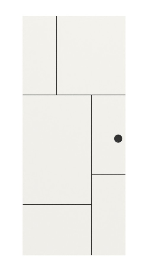 Na skrzydle drzwiowym znajduje się pięć czarnych fug w kierunku poziomym i pionowym. Na pokrytej białym lakierem powierzchni powstaje sześcienny wzornik, który nadaje Twojemu domowi indywidualny charakter.