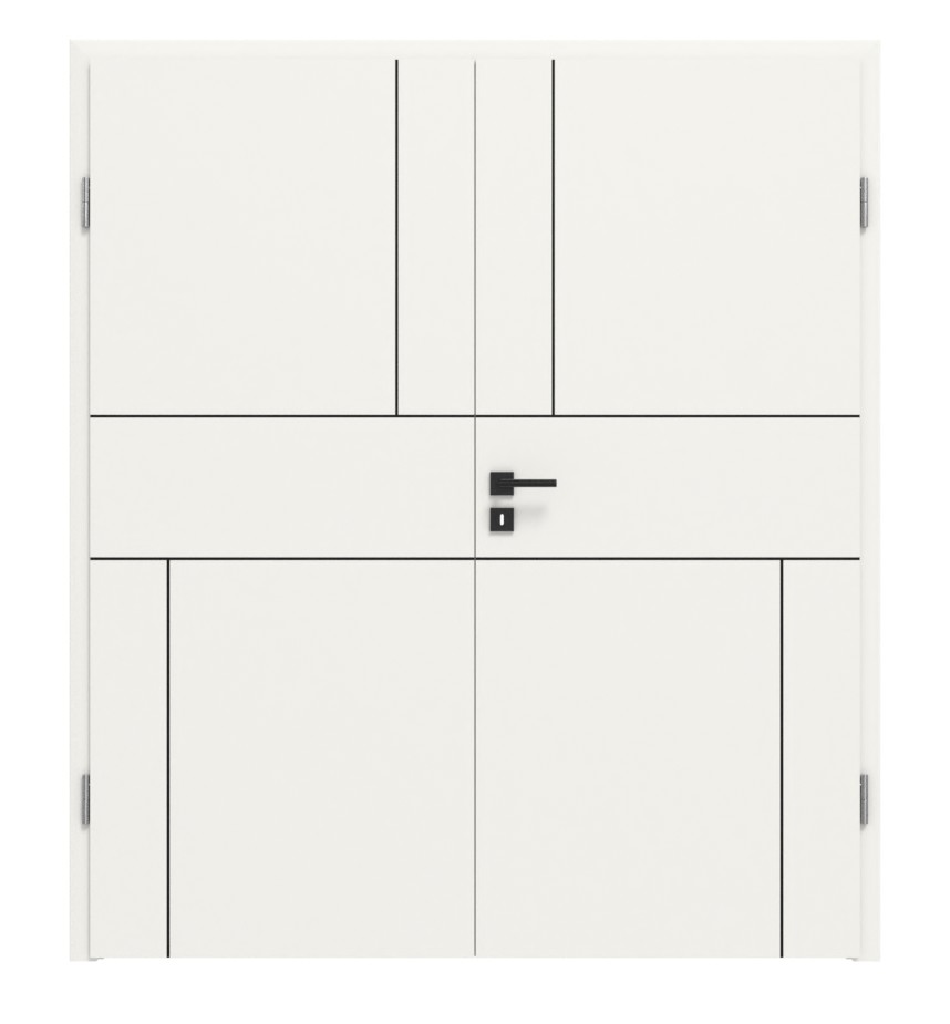 Drzwi dwuskrzydłowe o prostym wyglądzie: Dzięki drzwiom dwuskrzydłowym M42 w kolorze białym lakieru RAL 9016 z serii Linea Black możesz nadać swojemu domowi elegancki i otwarty charakter.