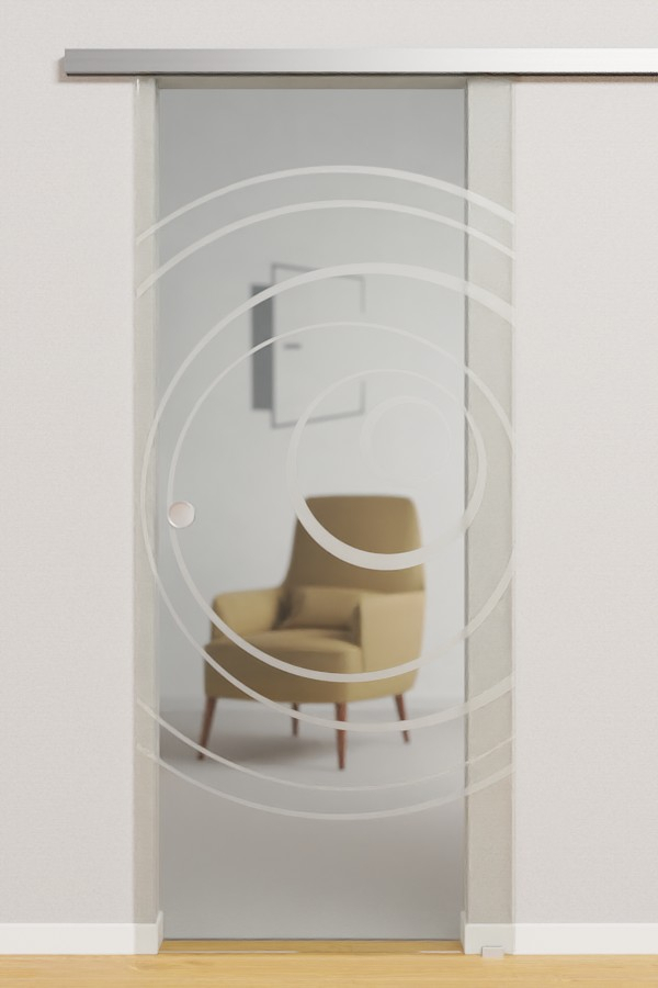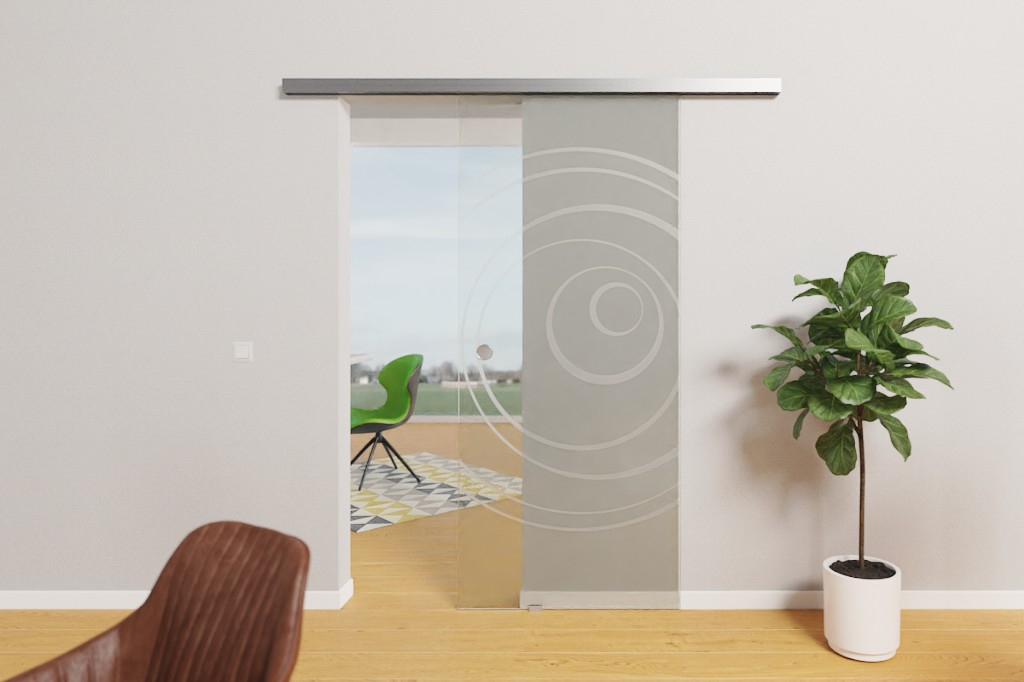Powierzchnia modelu wyróżnia się standardową powłoką Premio. Chroni szkło przed wszelkiego rodzaju zabrudzeniami i wyróżnia się łatwością pielęgnacji. Punktem centralnym drzwi jest efektownymotyw koła, złożony ze zwężających się linii. Matowa grafika nadaje szkle przezroczystemu skrzydłu drzwiowemu niepowtarzalny styl retro. Ponadto pełni funkcję delikatnej osłony przed wzrokiem ciekawskich i zapewnia przyjemny dopływ światła.