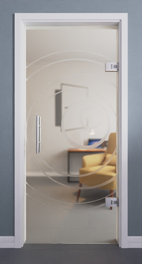 Nowoczesne drzwi wahadłowe zachwycają atrakcyjnym wyglądem retro. Wzajemnie zazębiające się koła przywodzą na myśl klasyczne wzorniki z lat 70. Zróżnicowana szerokość linii nadaje produktowi dynamiczny charakter.