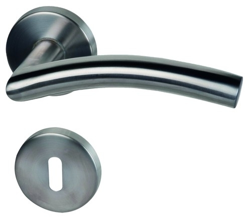 Model z okrągłymi rozetami wprowadza nowoczesną elegancję do Twoich drzwi dzięki wysokiej jakości stali nierdzewnej i dekoracyjnie wygiętemu uchwytowi. Przyciski po drugiej stronie mają kulisty kształt. Wbudowana sprężyna powrotna niezawodnie przywraca klamkę do poziomej pozycji.