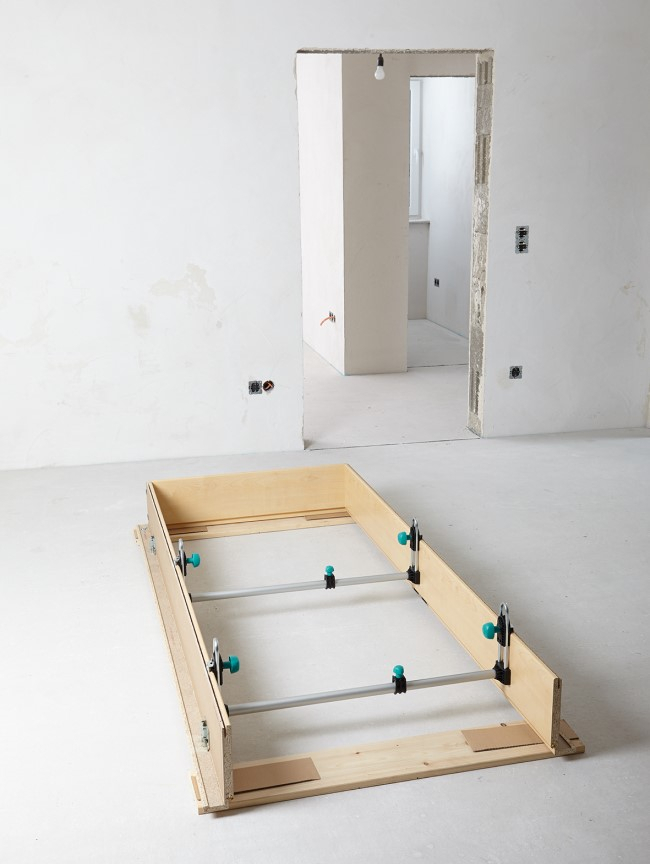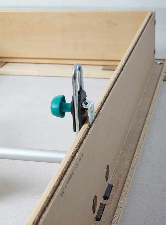 Blokada może być wykonana już na leżącej ościeżnicy. Dzięki temu jest ona podparta podczas podnoszenia i może być bezpiecznie zamontowana lub transportowana. Również dokładne ustawienie jest ułatwione dzięki rozpórce montażowej.