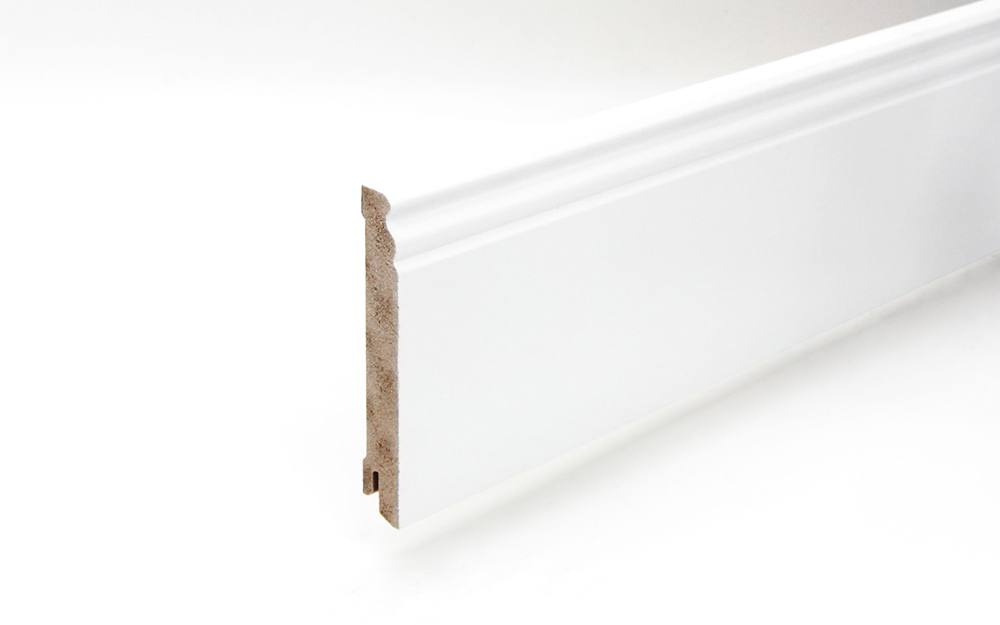 Najwyższa klasa: Dzięki imponującej wysokości 115 mm, ta listwa przypodłogowa gwarantuje prawdziwą atrakcję między podłogą a ścianą. Szczególnie polecana do dużych pomieszczeń z wysokimi sufitami. Dzięki eleganckiemu, zaokrąglonemu profilowi hamburgerowemu, listwa wygląda wspaniale. Rdzeń MDF listwy otoczony jest wysokiej jakości jasnym lakierem.