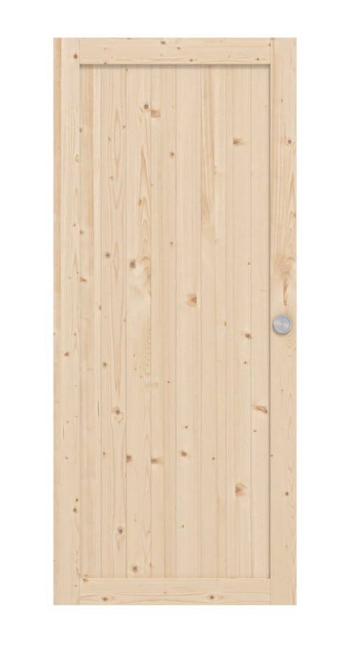 Estetyczne drzwi przesuwne z litego drewna od Radex z drewna świerkowego: