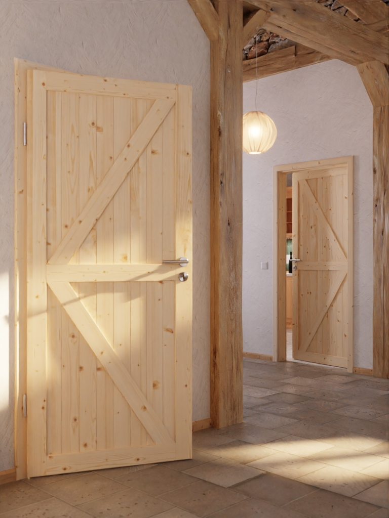 Wysokiej jakości loftowe drzwi z litego drewna od Radex z drewna świerkowego: