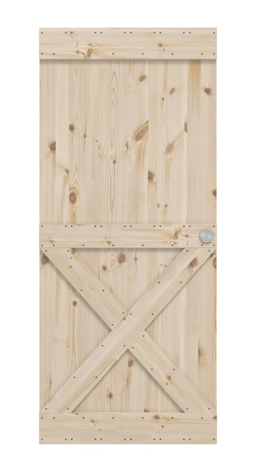 Dwie krzyżujące się listwy tworzą charakterystyczny kształt litery X, dzięki czemu skrzydło drzwiowe przyciąga wzrok w pomieszczeniu. Trzy listwy, umieszczone pośrodku oraz na górnym i dolnym końcu, dopełniają całościowy design. Ciemne śrubynadają subtelny akcent.