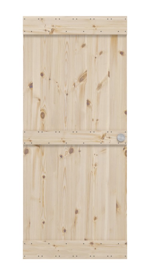 Trzy poprzeczne listwy zdobią rustykalne skrzydło drzwiowe. W górnej, środkowej i dolnej części nadają one drzwiom z litego drewna kształt i wygląd. Ciemne śruby dopełniają oryginalny charakter drzwi.