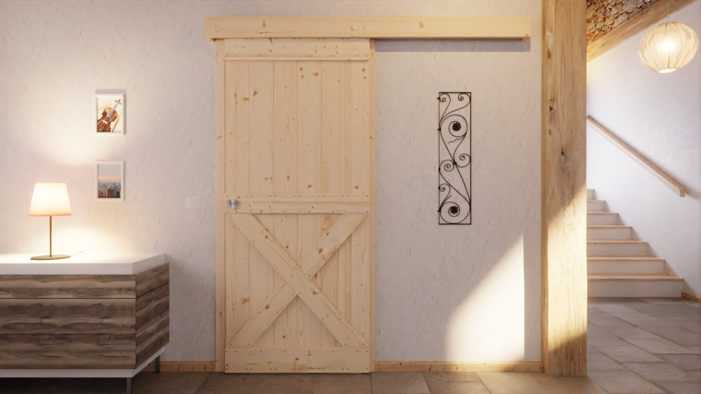 Dwie krzyżujące się listwy tworzą charakterystyczny kształt litery X, który sprawia, że skrzydło drzwiowe przyciąga wzrok. Trzy listwy są umieszczone pośrodku oraz na górnym i dolnym końcu i dopełniają design. Oryginalny akcent nadają ciemne śruby.