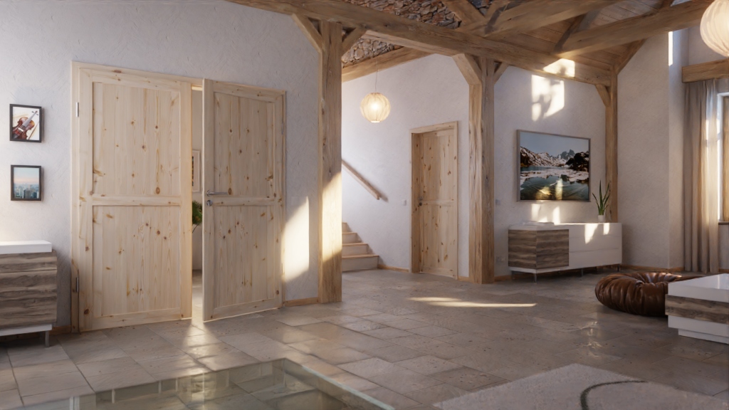 Surowa powierzchnia zapewnia swobodę kreatywną, umożliwiając zaprojektowanie drzwi dwuskrzydłowych zgodnie z indywidualnymi preferencjami przy użyciu ulubionego lakieru. Można również wybrać wersję bezbarwną lubolejowaną, które podkreślają cechy szczególne i niepowtarzalne usłojenie drewna.