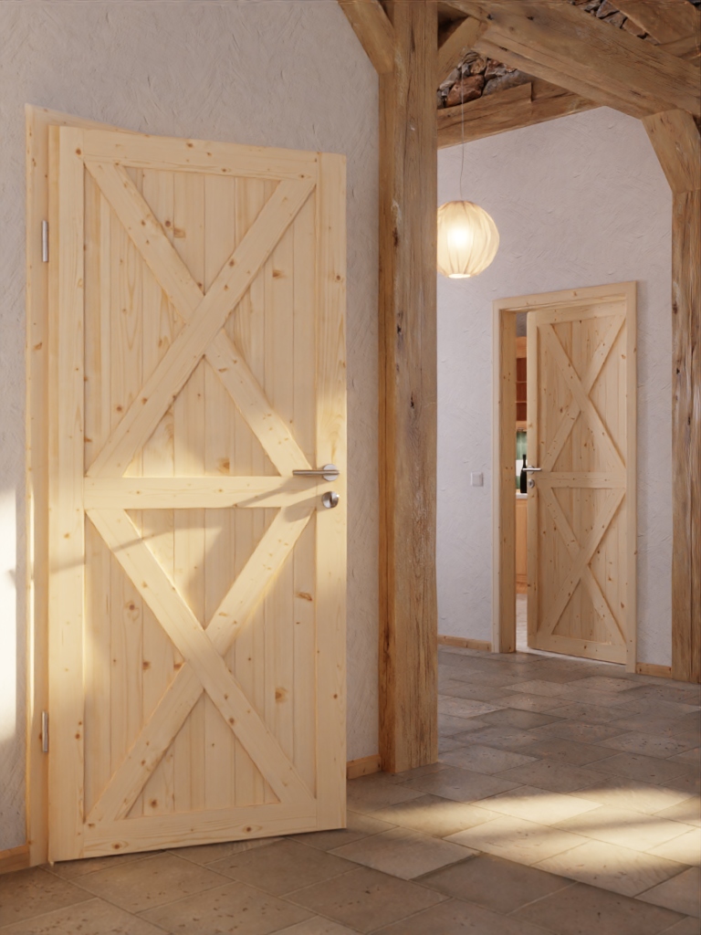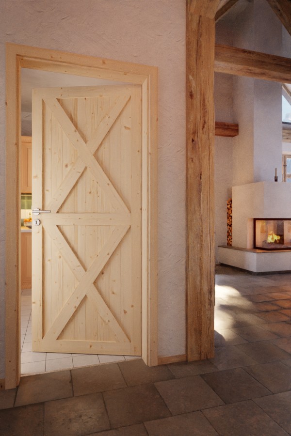 Powierzchnia drzwi z litego drewna dostępna jest zarówno surowa, jak i lakierowana lub olejowana. Surowa powłoka idealnie dopasowuje się do indywidualnych potrzeb i może być pomalowana na kolorowo. Przezroczysta lakierowana oraz olejowana powierzchnia podkreślają piękne usłojenie drzwi.