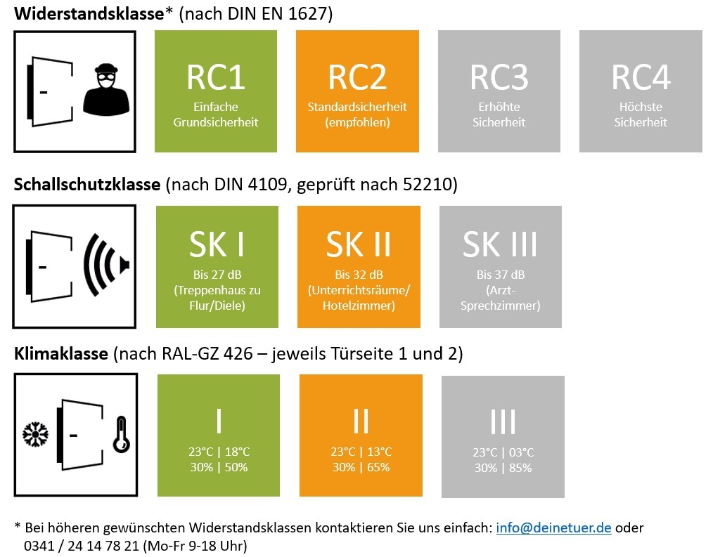 Ochrona akustyczna i odporność na odkształcenia w połączeniu: Solidna konstrukcja zapewnia ochronę przed codziennymi hałasami już w najmniejszej klasie ochrony akustycznej. Standardowa konfiguracja zapewnia również odporność na typowe różnice wilgotności i temperatury powietrza. Drzwi mają wkładkę z pełnej płyty. Ich rdzeń ma w zależności od wersji kilka warstw. Standardowa ochrona osiągana jest w klasie odporności RC2 (zalecana). W zależności od Twoich osobistych potrzeb klasa odporności i klimatu może być zwiększona. Proszę pamiętać: standardowa konfiguracja elementu drzwiowego nie zawiera ochrony przed włamaniem. Więcej informacji znajdziesz w sekcji funkcji ochronnych.