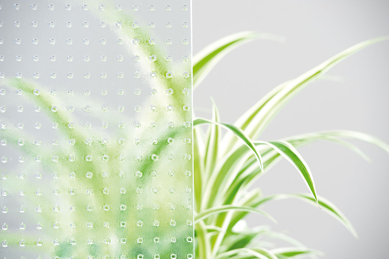 Aby nadać kształt, płynna masa szklana przechodzi przez dwa strukturyzowane walce. Wytłaczają one wzornik na powierzchni szkła. Po ostygnięciu tafli szkło jest następnie docinane na wymiar.