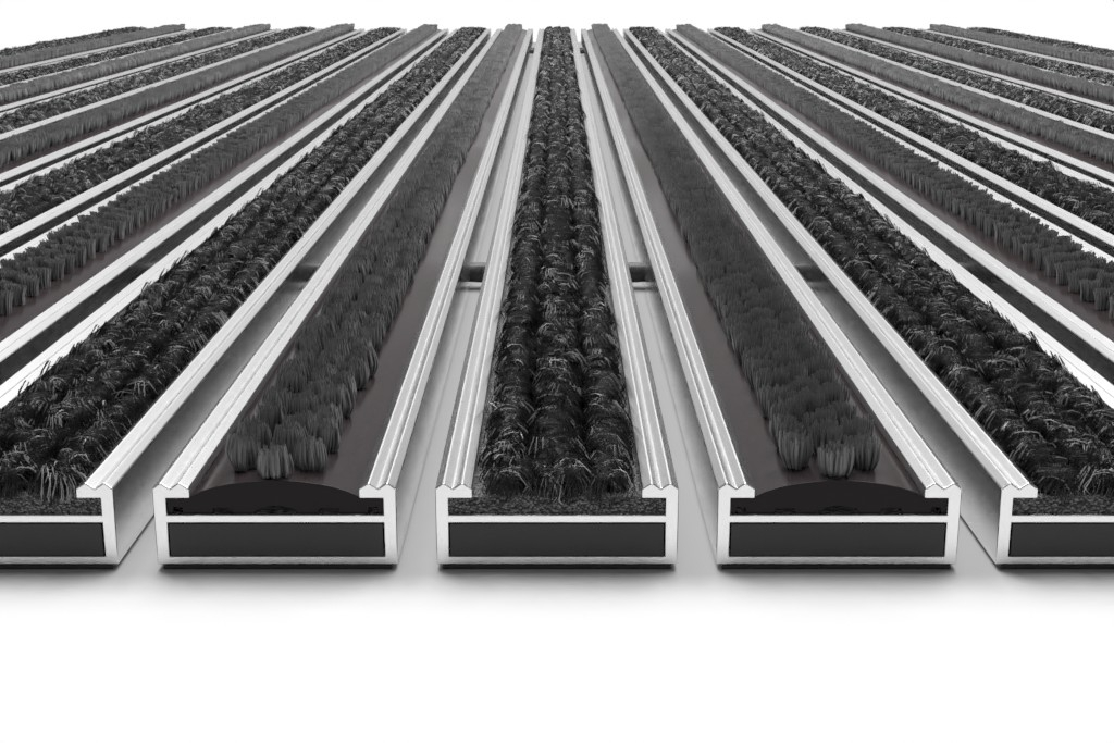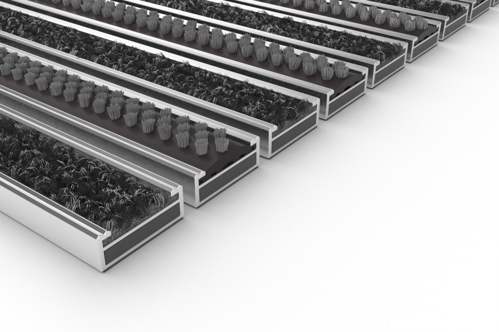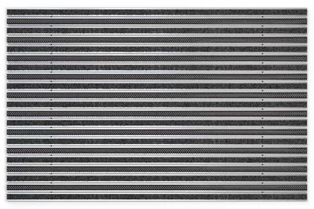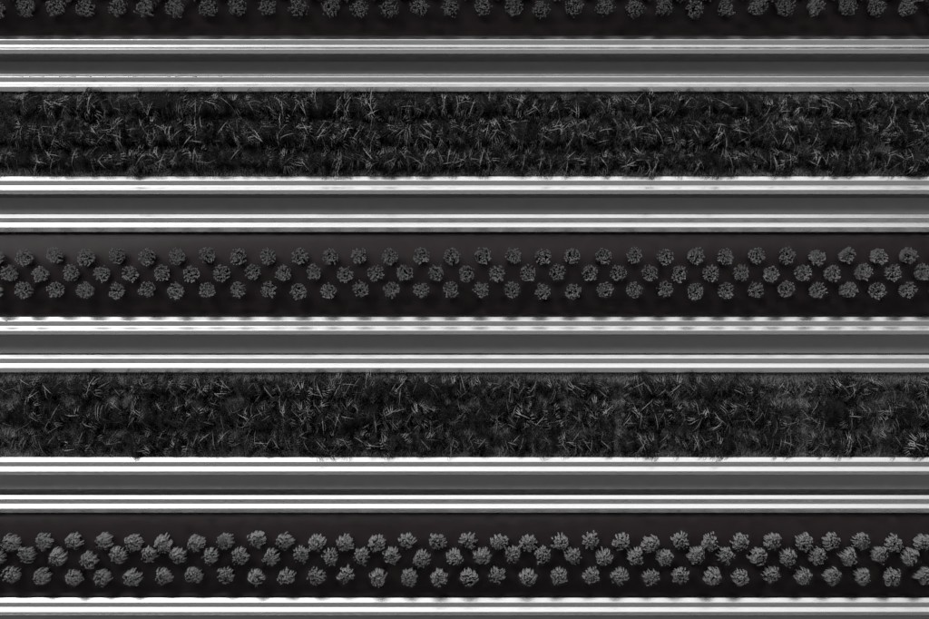 Obok czarnych pasków Rips znajdują się szare szczotki kasetowe. Kombinacja nadaje Twojemu wejściu indywidualny wygląd. Paski otoczone są profilami aluminiowymi, które sprawiają, że materiał jest sztywny. Razem materiały doskonale usuwają gruby i drobny brud oraz wchłaniają wystarczającą ilość wilgoci. Maty aluminiowe dzięki swoim właściwościom są idealne do wnętrz i na zewnątrz z odpowiednim zadaszeniem.