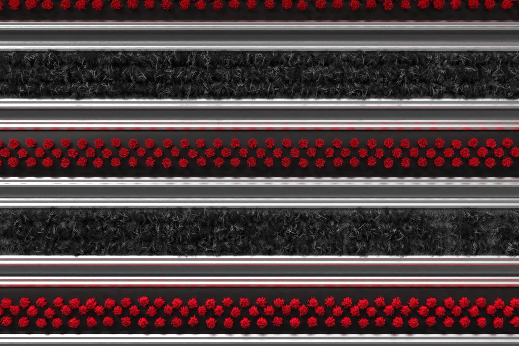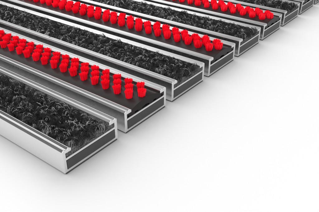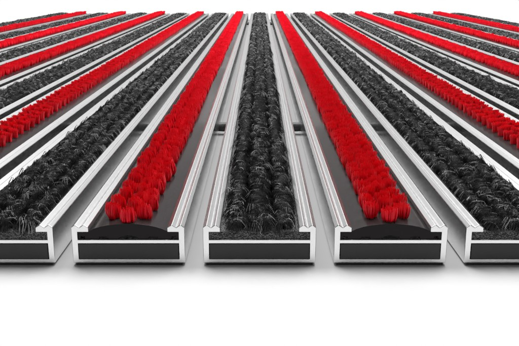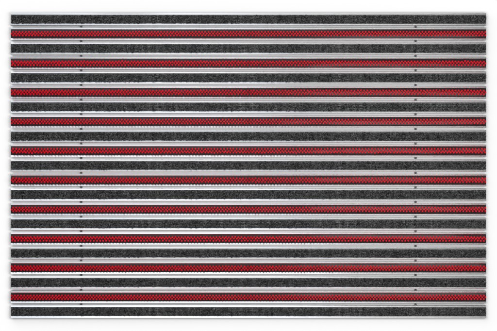Twój wejście zyskuje indywidualny wygląd dzięki czarnym paskom i czerwonym szczotkom kasetowym. Różne materiały są obramowane profilami aluminiowymi, co sprawia, że są sztywne na skręcanie. Razem materiały doskonale usuwają gruby i drobny brud oraz wchłaniają wystarczającą ilość wilgoci. Maty aluminiowe dzięki swoim właściwościom są idealne do wnętrz i na zewnątrz z odpowiednim zadaszeniem.