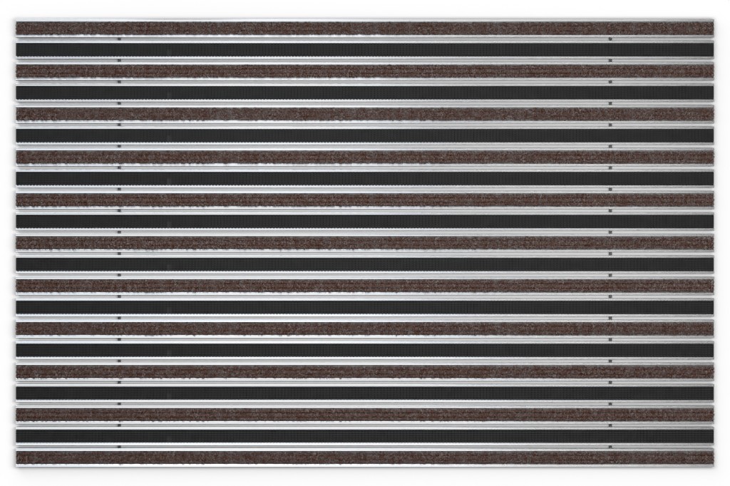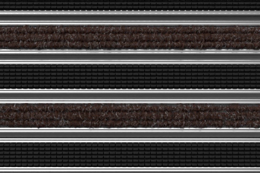Czarne paski gumowe i brązowe paski ripsowe przeplatają się w rzędach. Mieszanka materiałów zapewnia wysoką funkcjonalność. Paski gumowe wchłaniają wilgoć, podczas gdy paski ripsowe zajmują się drobnym brudem, dużym brudem i wilgocią. Żłobkowany profil antypoślizgowy na częściach gumowych zapewnia odpowiednią odporność na poślizg.