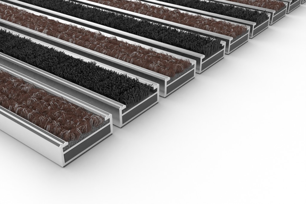 Brud i zanieczyszczenia nie mają szans: oba materiały są mistrzami w usuwaniu brudu. Nie obawiaj się wilgoci - maty są antypoślizgowe. Wnętrza lub zadaszone przestrzenie zewnętrzne są idealne dla tych mat. Aluminium jako materiał nośny nie tylko dobrze wygląda: sprawia, że różne paski są sztywne i wytrzymałe. Przejazd wózkiem inwalidzkim nie stanowi problemu dla mat aluminiowych.