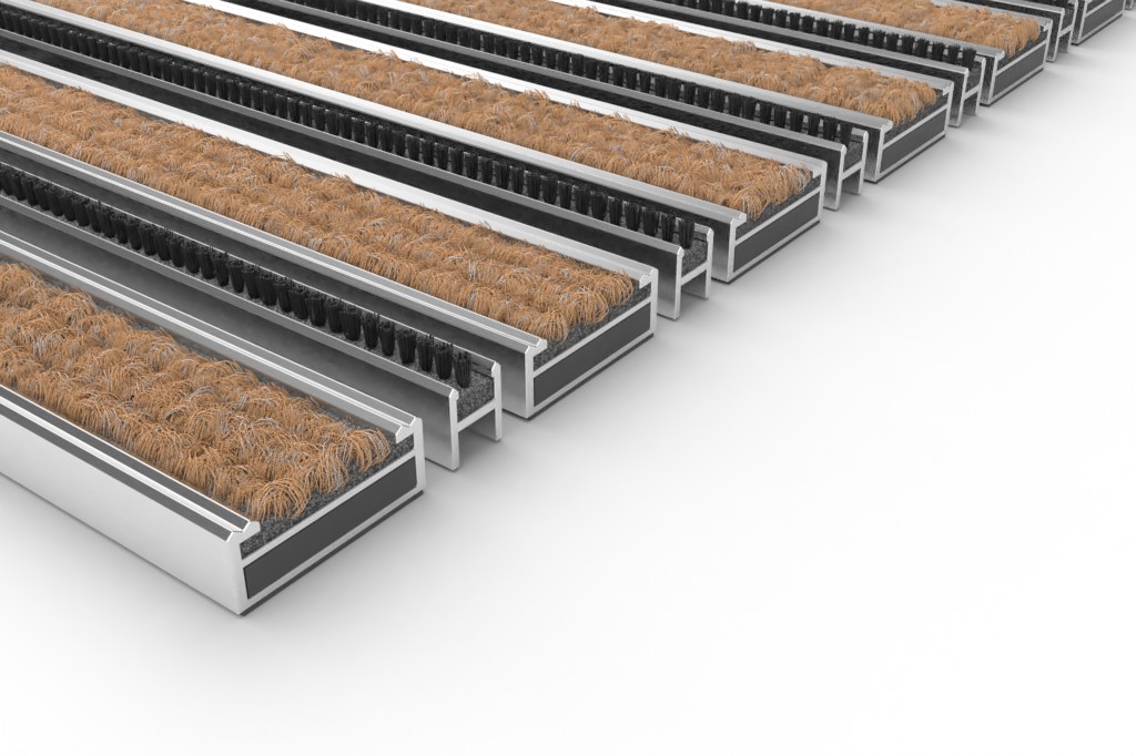 • Maty z profilu aluminiowego z paskami rypsu o szerokości 30 mm i mini szczotką 10 mm