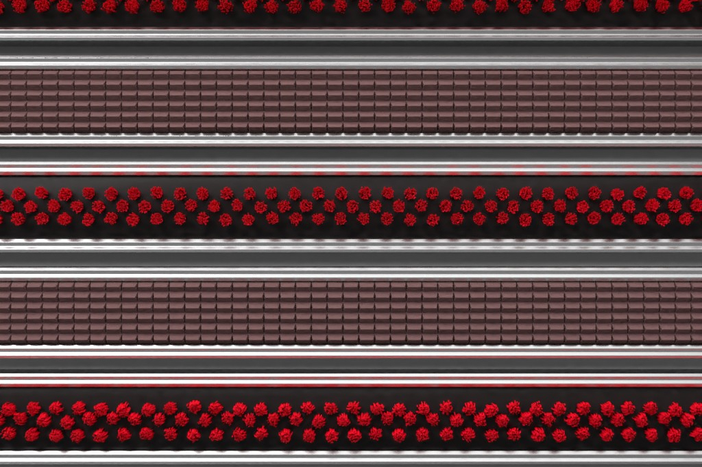 Widok z góry maty z profilu aluminiowego KLASSIK Safe R03V brązowy / Work B05 czerwony - Entrada