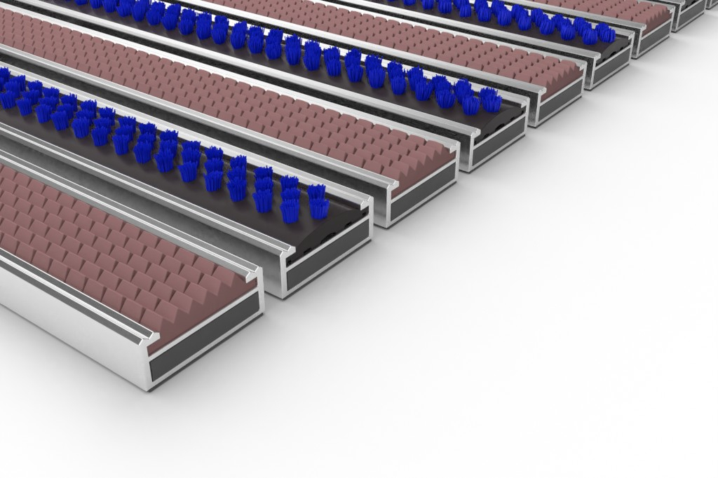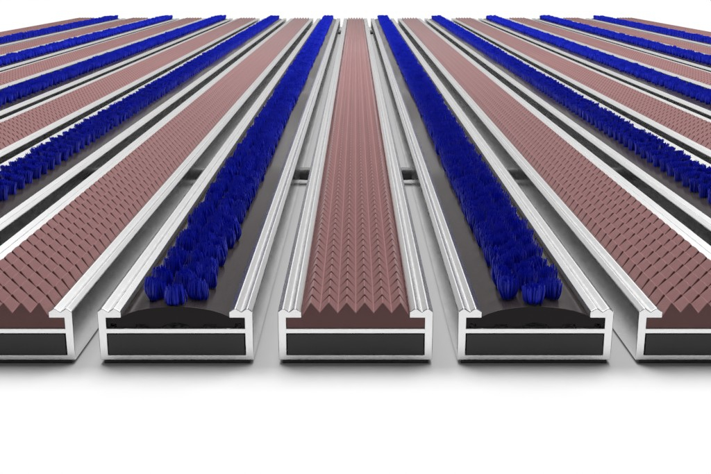 Mata z profilu aluminiowego z brązowej gumy i niebieskich wycieraczek z wkładem szczotkowym
