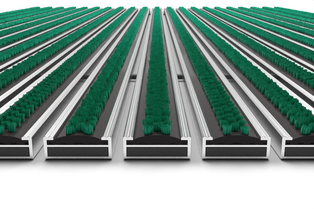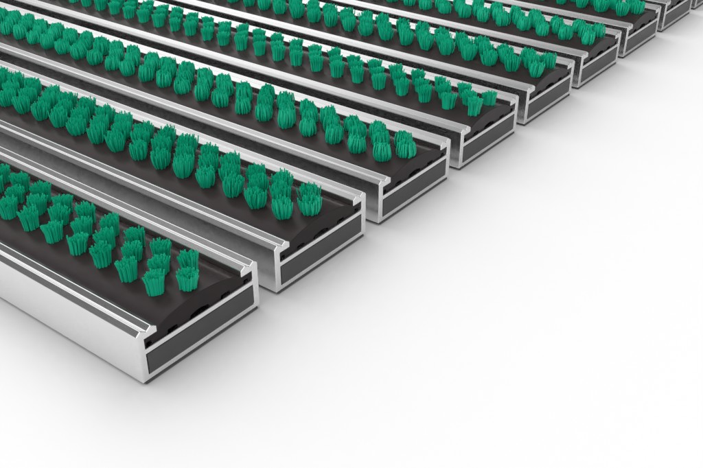 Wycieraczka wejściowa odpowiednia do grubych zanieczyszczeń i wilgoci z szczotkami kasetowymi w kolorze zielonym: