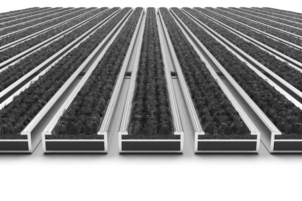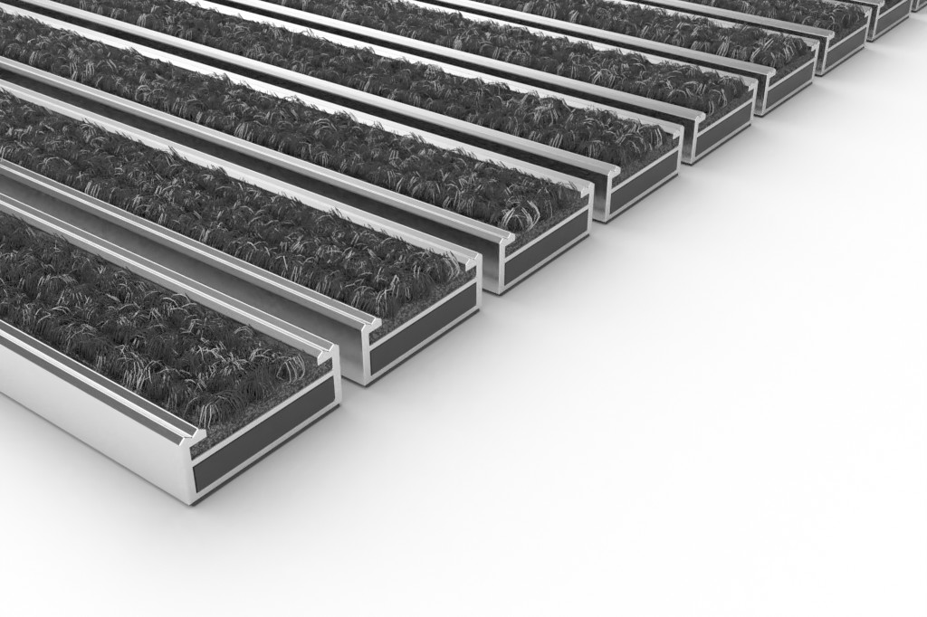 Wąskie paski z wytrzymałego polipropylenu w kolorze antracytowym zapewniają wchłanianie wilgoci, co skutkuje suchymi podeszwami. Sztywne profile sprawiają, że zwijana mata jest zaufanym przedmiotem codziennego użytku. Optymalne maty wejściowe są uzupełnione o profile tłumiące hałas kroków.