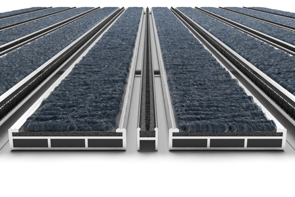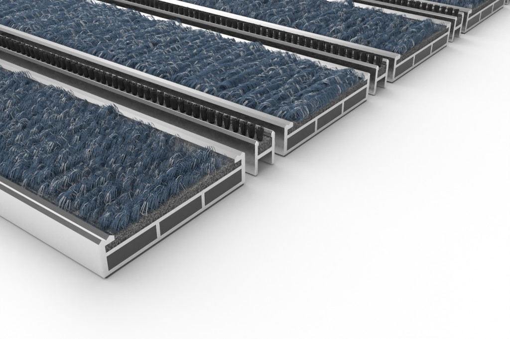 Widok z góry maty z profilu aluminiowego ROYAL ryps T06PP niebieski/szary / miniszczotka MB01 czarna - Entrada