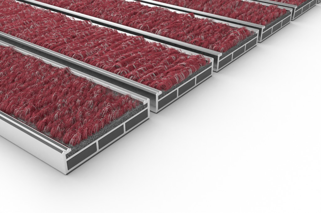 Czerwony materiał typu rips nadaje indywidualny wygląd tym skutecznym matom wejściowym. Zaleca się montaż maty w zadaszonym obszarze zewnętrznym i wewnętrznym. Połączenie ripsu i profili aluminiowych sprawia, że mata jest profesjonalistą w usuwaniu drobnych zanieczyszczeń i wilgoci. Dzięki nietypowej szerokości 55 mm mata może wchłonąć jeszcze więcej wilgoci i brudu. Szerokość nie przeszkadza jednak w zwijaniu maty do transportu. Twoje kroki będą tłumione przez izolację.