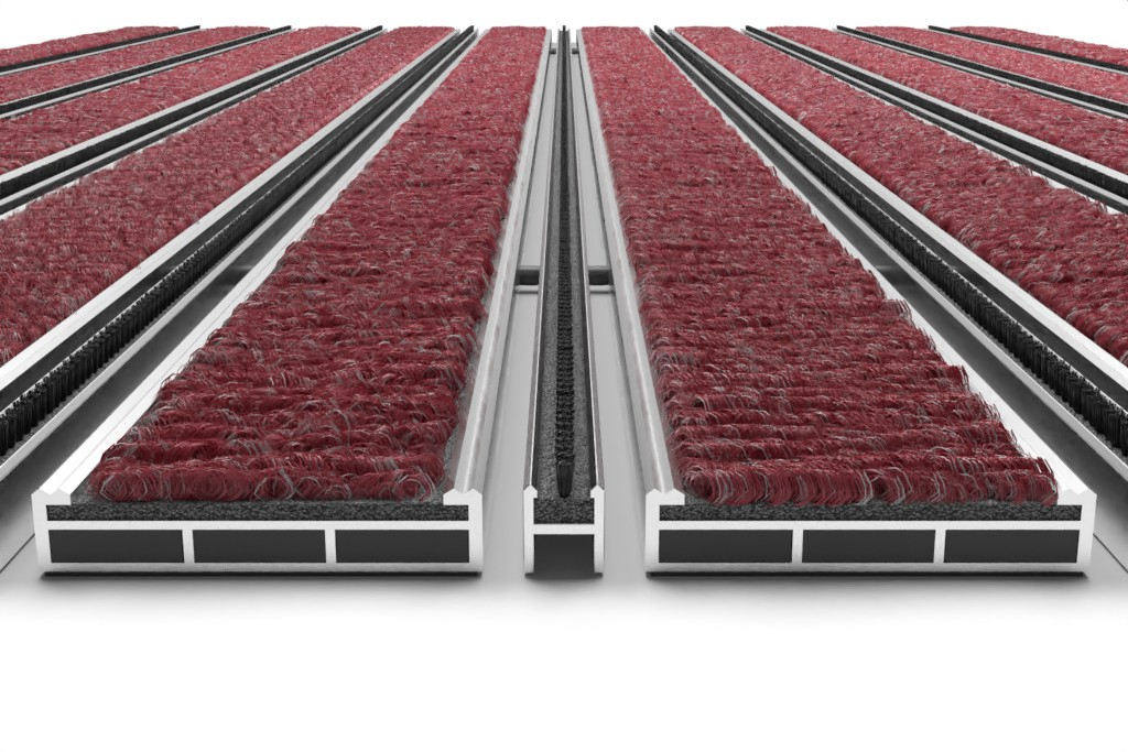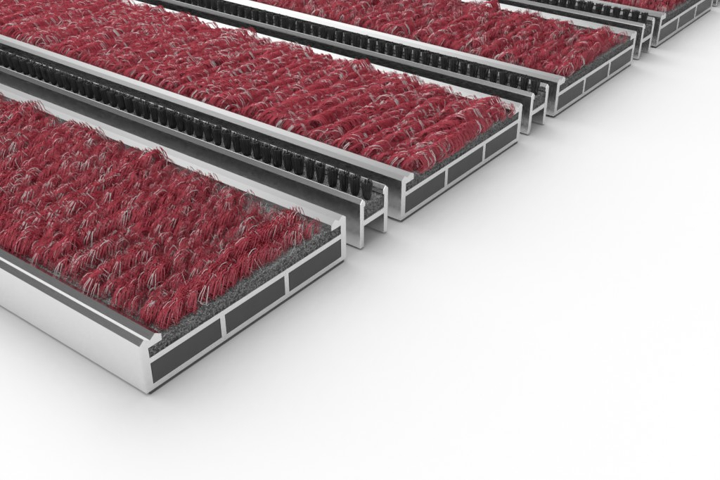 Widok z góry na matę z profilu aluminiowego ROYAL ryps T09PP czerwony / miniszczotka MB01 czarny – Entrada
