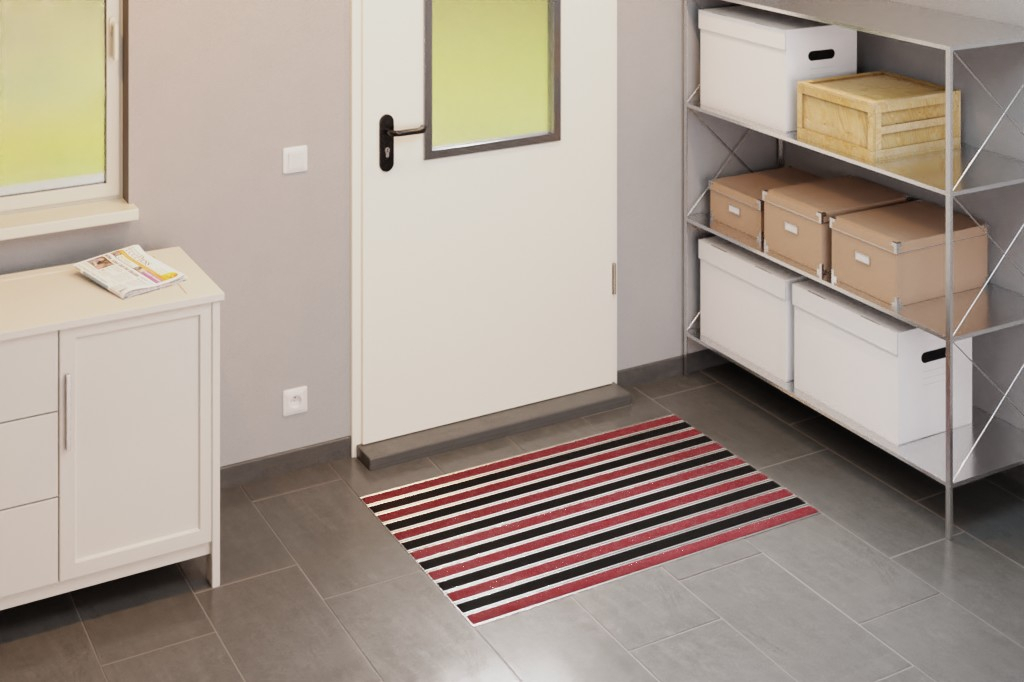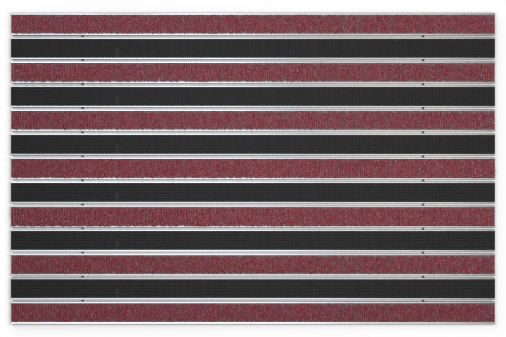 Czerwone paski rypsowe i czarne profile gumowe zapewniają pewny krok i nowoczesny wygląd. Czy zamierzasz używać maty w zadaszonym obszarze zewnętrznym i wewnętrznym? To idealny wybór, ponieważ elementy rypsowe i gumowe skutecznie usuwają drobne zanieczyszczenia i niepożądaną wilgoć. Szerokość 55 mm sprawia, że mata wygląda bardziej imponująco. Ale nie tylko wizualnie masz korzyści - szerszy materiał wchłania jeszcze więcej wody i cząsteczek brudu. Mimo szerokości mata może być zwijana, a izolacja akustyczna jest zintegrowana.