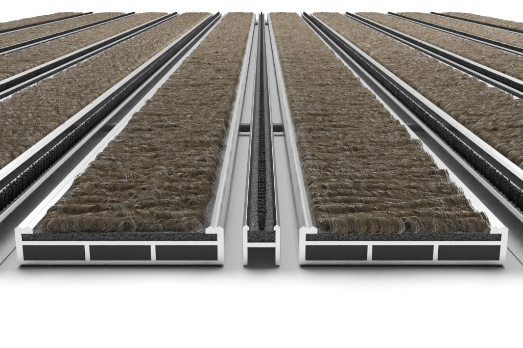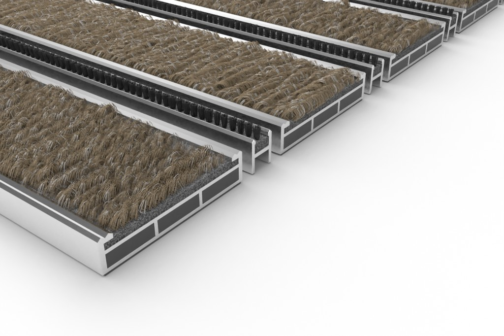 Widok z góry na matę z profilu aluminiowego ROYAL ryps T12PP piasek / miniszczotka MB01 czarny - Entrada