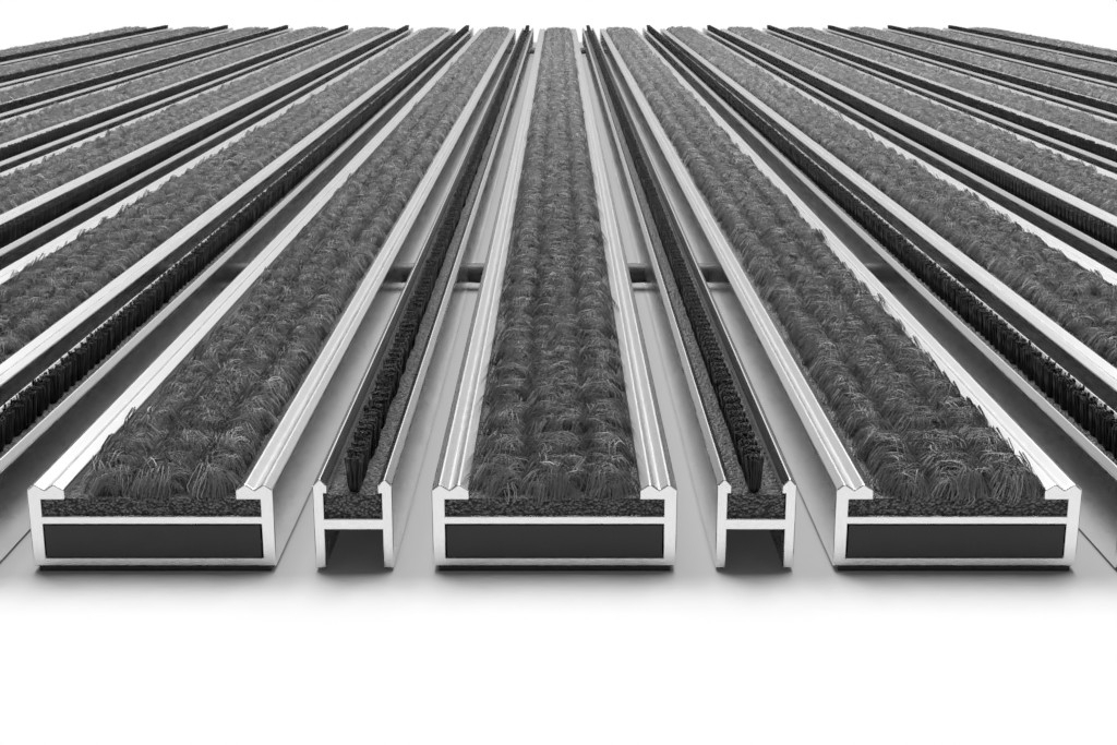 Widok z góry maty z profilu aluminiowego KLASSIK ryps T05PP szary / miniszczotka MB01 czarny - Entrada