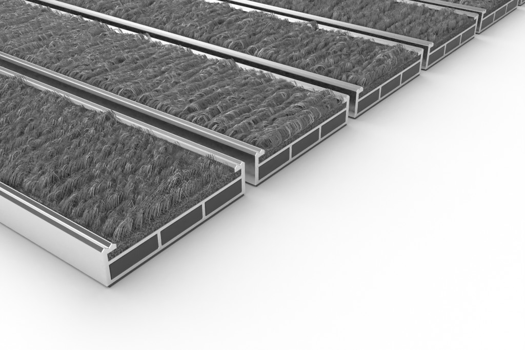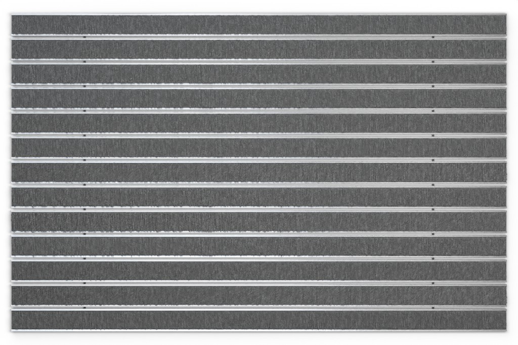 Marmurkowy jasny szary określa wygląd elementów Rips, które układają się w szerokie paski. Czy zamierzasz używać maty w zadaszonych przestrzeniach zewnętrznych i wewnętrznych? To idealny wybór, ponieważ elementy Rips skutecznie usuwają drobny brud i niepożądaną wilgoć. Niezwykle szerokie i bezpieczne: 55 mm to szerokość profili. Dzięki temu wchłaniają jeszcze więcej brudu i wody. Dodatkowa izolacja akustyczna sprawia, że Twoje kroki są cichsze.