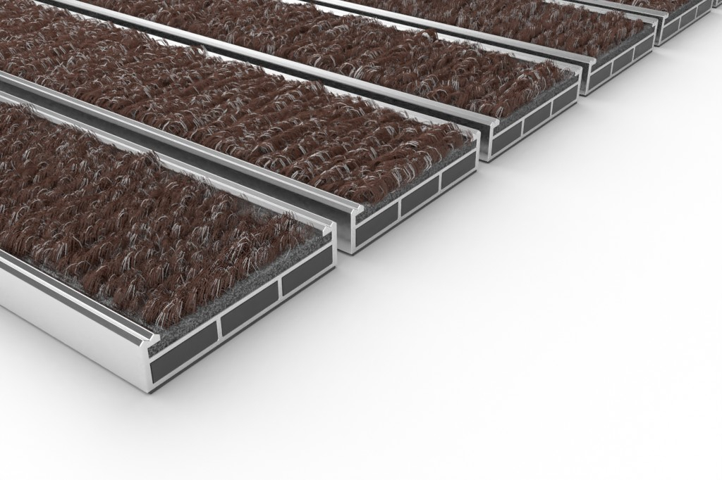 Pasma ripsowe tej maty wejściowej są w delikatnym, melanżowym brązie i podnoszą estetykę każdego wejścia. Zaleca się montaż maty w zadaszonych przestrzeniach zewnętrznych i wewnętrznych. Połączenie ripsu i profili aluminiowych sprawia, że mata doskonale radzi sobie z usuwaniem drobnych zanieczyszczeń i wilgoci. Dzięki nietypowej szerokości 55 mm mata może wchłonąć jeszcze więcej wilgoci i brudu. Szerokość nie przeszkadza jednak w zwijaniu maty do transportu. Twoje kroki będą amortyzowane przez izolację.