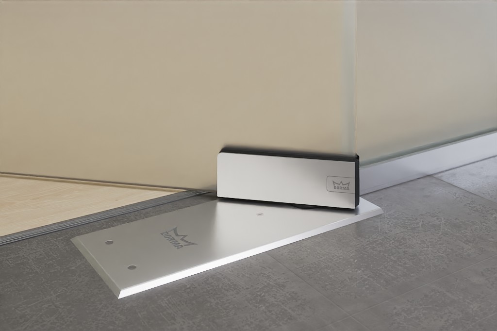 Praktyczne drzwi wahadłowe wyróżniają się możliwością obsługi bez użycia rąk. Łatwo otwierają się w obu kierunkach. Podłogowe zamki drzwiowe przywracają skrzydła drzwi do pozycji wyjściowej. Prędkość zamykania można dostosować indywidualnie. Model posiada również pozycję blokady przy 90°. Ważny jest odporny na nacisk montaż zamków w podłodze.