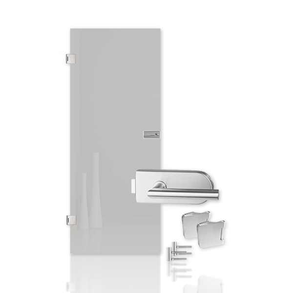 Sprytne oszczędzanie: Skorzystaj z doskonałego zestawu oszczędnościowego składającego się z całkowicie matowej szklanej drzwi produkcji marki Erkelenz oraz wysokiej jakości zestawu okuć.