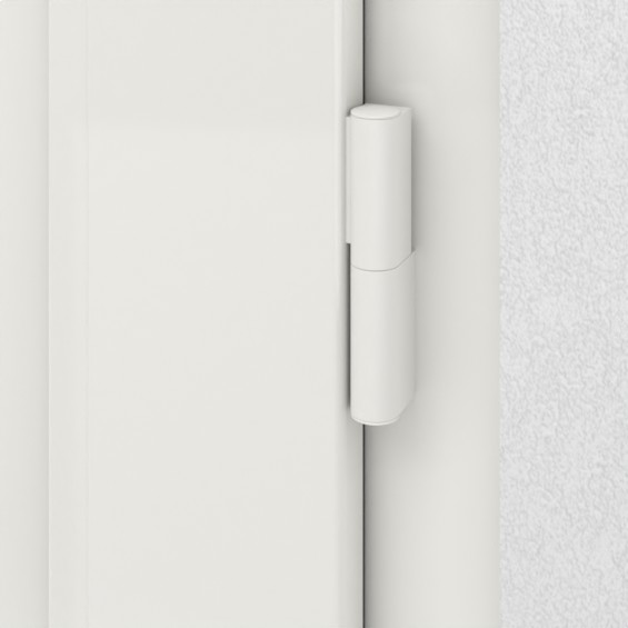 Dopracowane drzwi wejściowe z tworzywa sztucznego zachwycają masywnymi podwójnymi zawiasami i zamkiem z hakiem obrotowym: