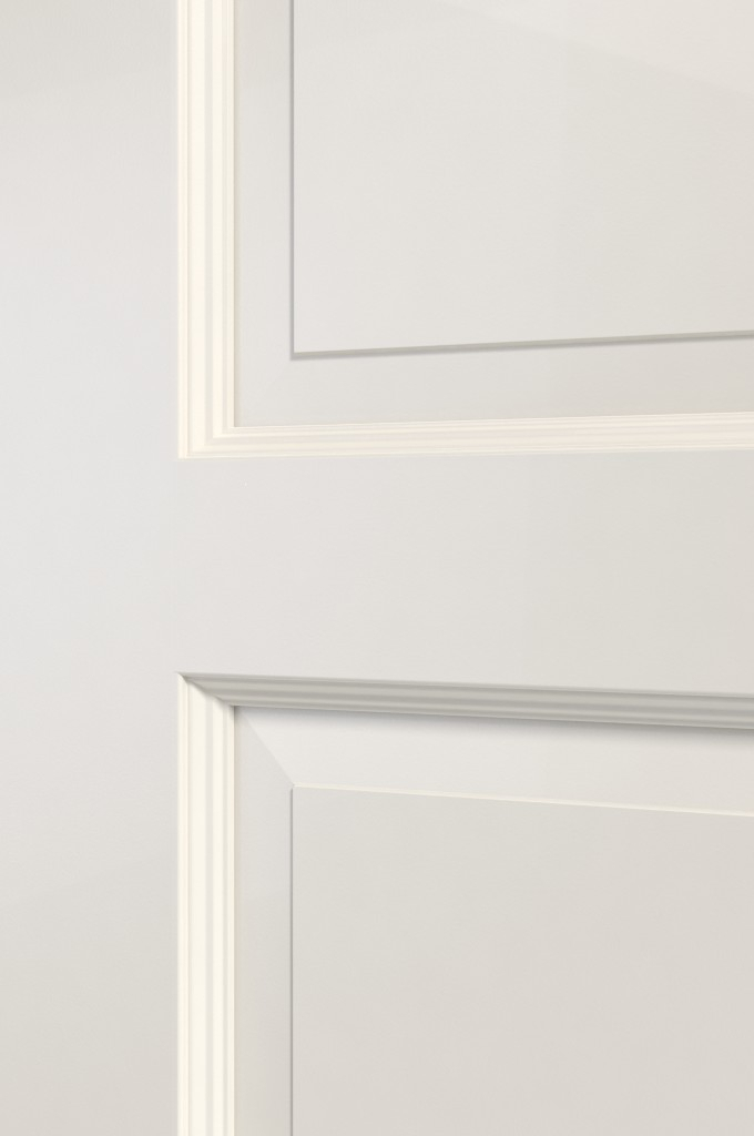 Kaseta drewniana jest wstawiona i poddana procesowi laminowania, który polega na przyklejeniu jej do fryzu drzwiowego. Drewniane listwy nakładane na skrzydło drzwiowe są więc tutaj zbędne, co sprawia, że model ten stanowi unikat wśród drzwi lakierowanych na biało.