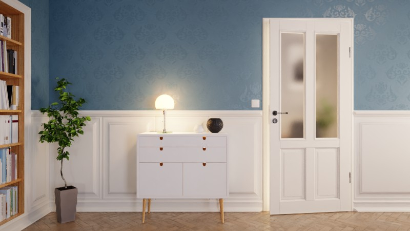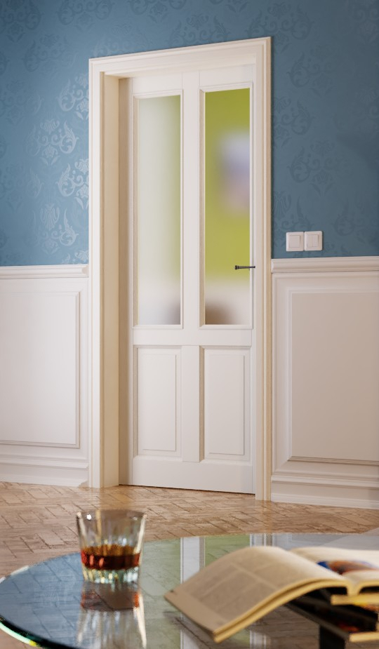 Dominującym elementem jest tutaj obszerne przeszklenie . W standardowej konfiguracji drzwi wykonane są ze szkła przezroczystego, ale za dodatkową opłatą można wybrać spośród czterech innych rodzajów szkła, w tym szkło satynowane i strukturyzowane. Połączenie białej lakierowanej ramy i szkła w otoczeniu płaskich listew szklanych. Drzwi wewnętrzne wykonane przez stolarzaprzekonują przede wszystkim jakością.