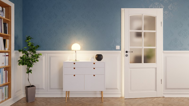 Starannie biała lakierowana drzwi wewnętrzne z czymś wyjątkowym: