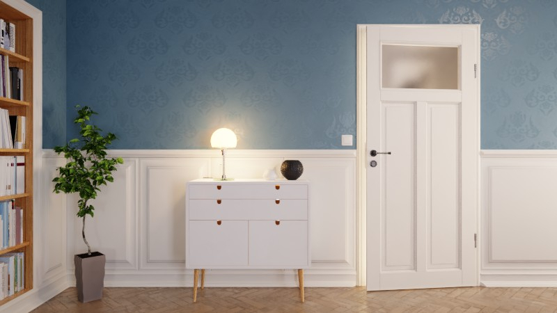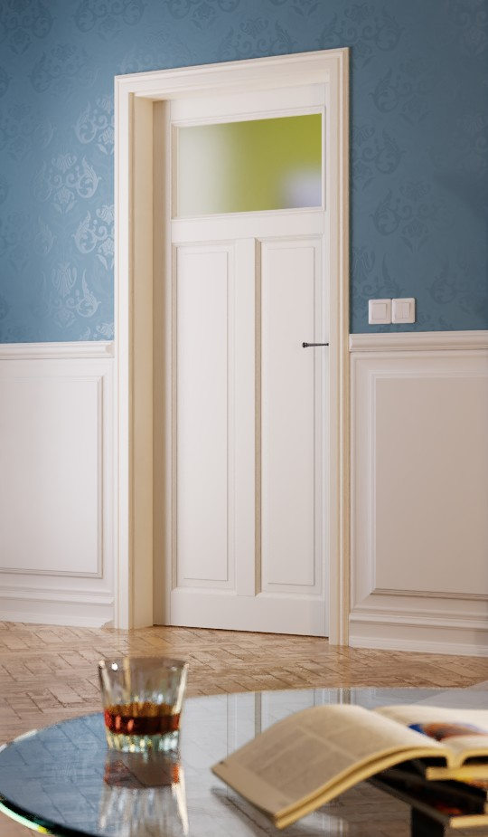 Solidna konstrukcja ramy jest zapewniona dzięki wysokiej jakości stolarki przemysłowej. Wysokiej jakości białe wykończenie dopełnia całościowy wygląd drzwi.